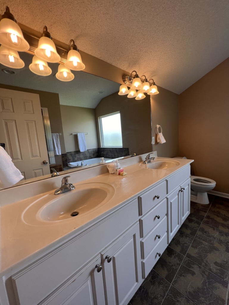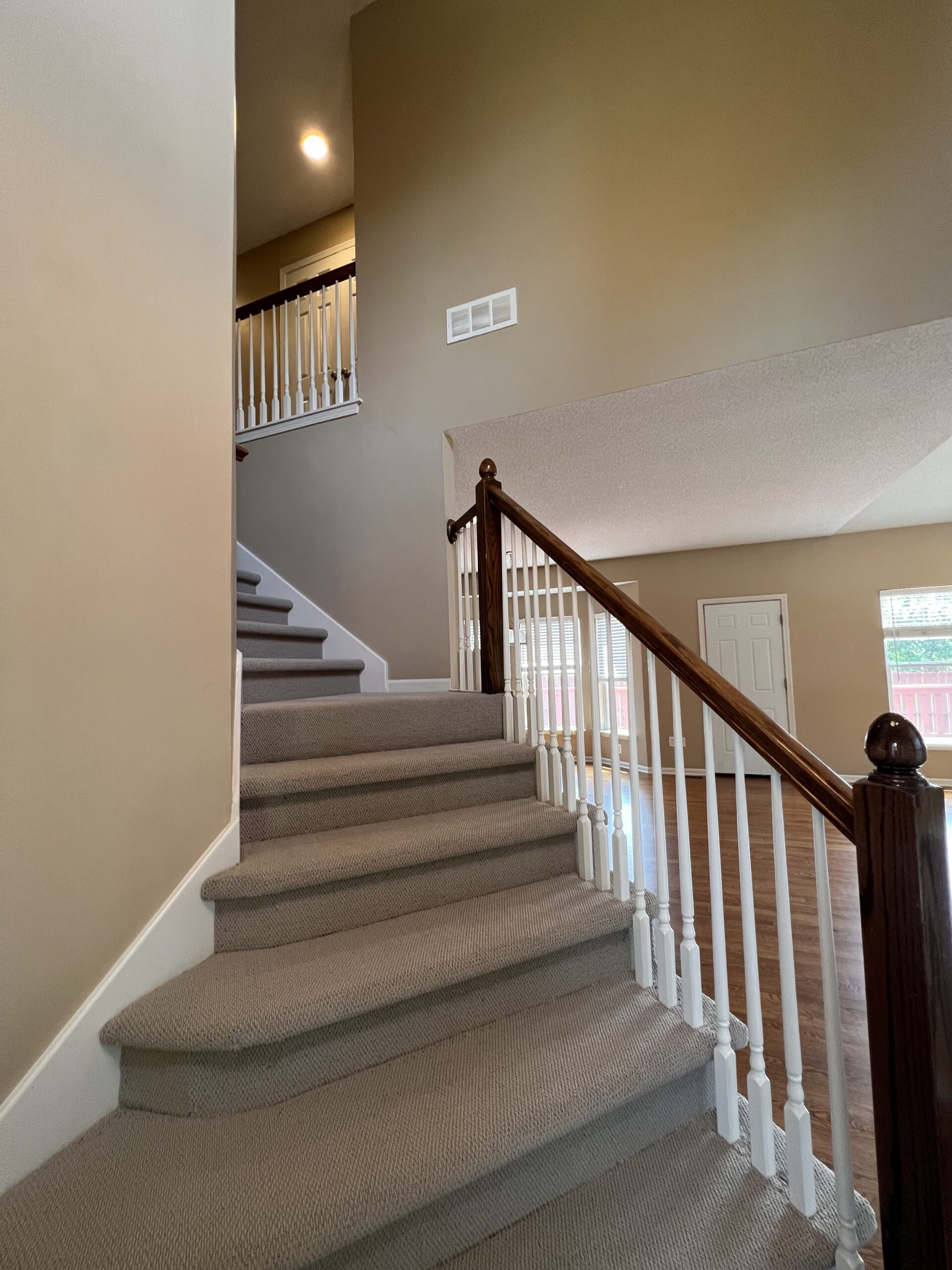LAWN CARE INCLUDED Contemporary 2-story custom home located off 10th Street. Approximately 2100 square feet. Lovely corner lot with a fully fenced back yard. 2-car garage, professionally landscaped yard, back deck and a great outdoor space! Main level hosts hardwood floors , open eat-in kitchen, half bath, family room with a fireplace. Upper level offers 3 bedrooms, two full bathrooms, laundry room including washer and dryer. Nice light in all rooms, blinds included. This home has a finished basement with a small family room and bar. Unfinished storage space as well.
