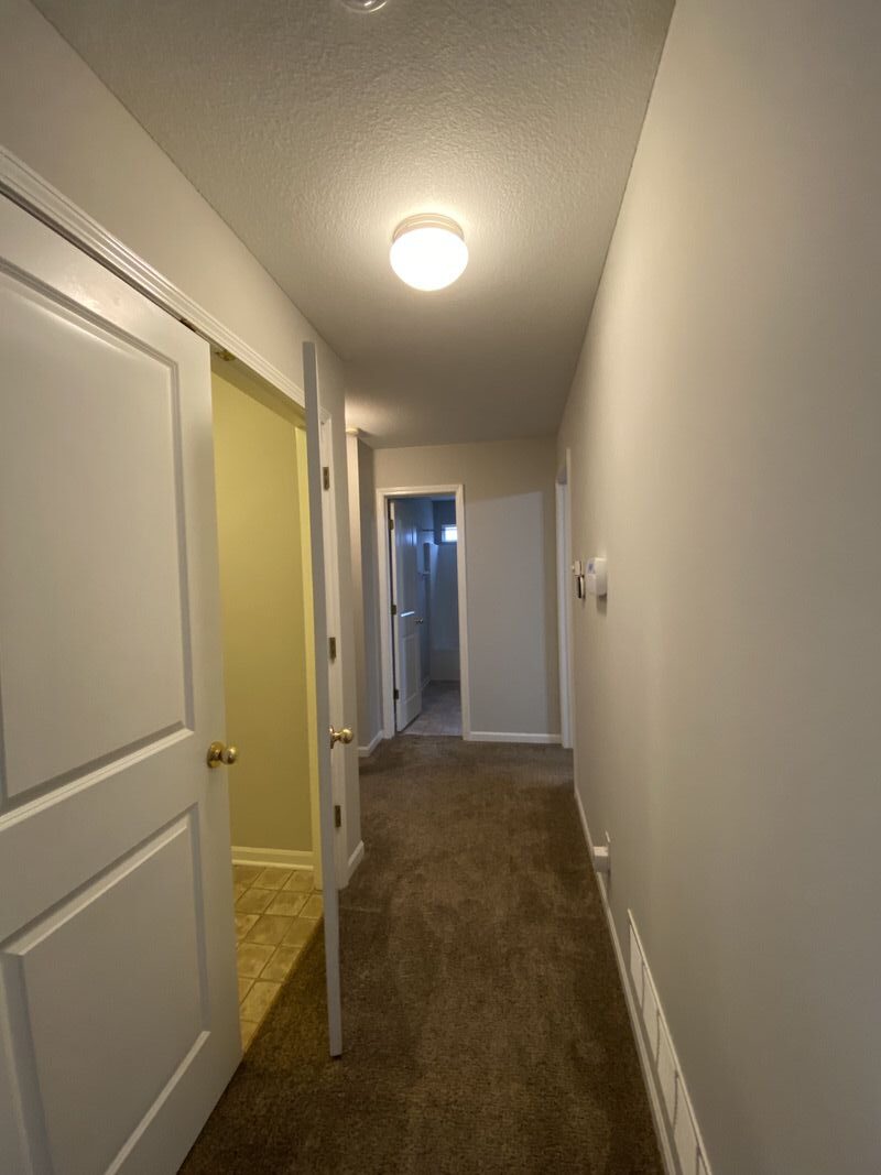 Main level offers living room with wonderful light, custom blinds. Upper level hosts nice kitchen with island and eat in area – hard surface wood flooring. Laundry is in the hallway, three bedrooms including primary bedroom. Primary bath had double vanities, oversized onyx shower, nice walk in closet, separate water closet.